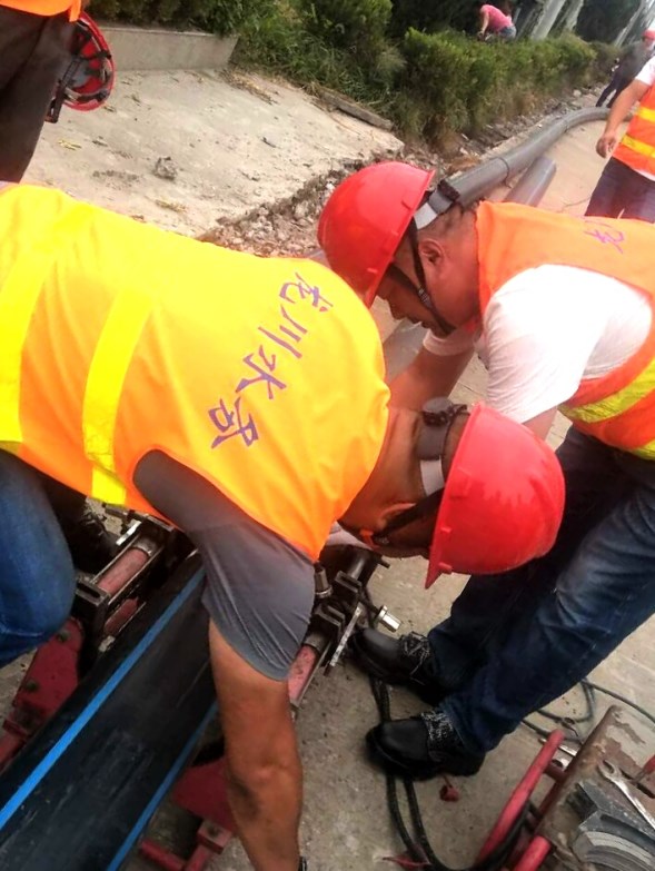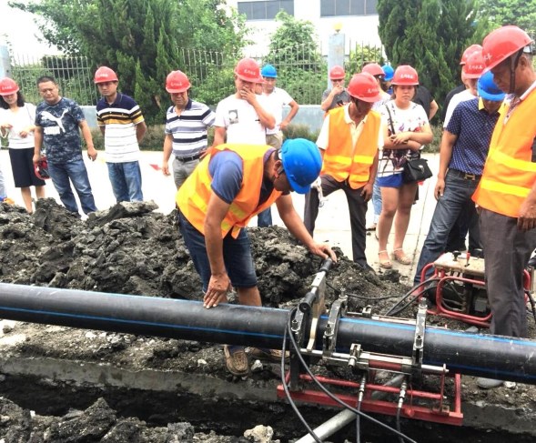 2018年9月6日上午,江都區(qū)武堅鎮(zhèn)開發(fā)區(qū)DN200PE管道施工現(xiàn)場打破了往日的沉悶,一輛輛工程施工車輛整齊地停放在道路一側(cè),揚州市惠民區(qū)域供水投資有限公司各鄉(xiāng)鎮(zhèn)供水所和測漏維修隊將在這里進行PE管熔焊技術實踐演練活動。