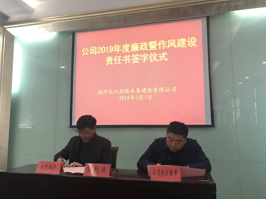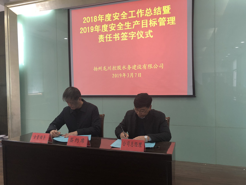 揚州龍川水務公司舉行2019年度安全生產目標管理責任書和廉政暨作風建設責任書簽約儀式(圖文)