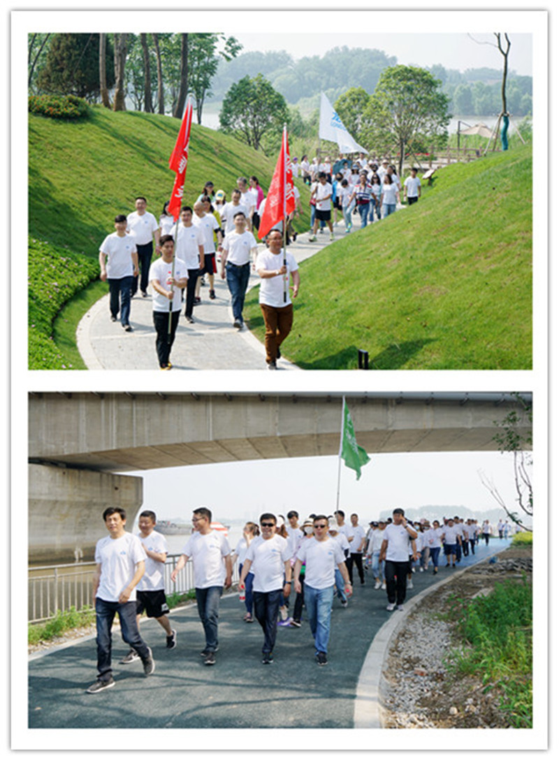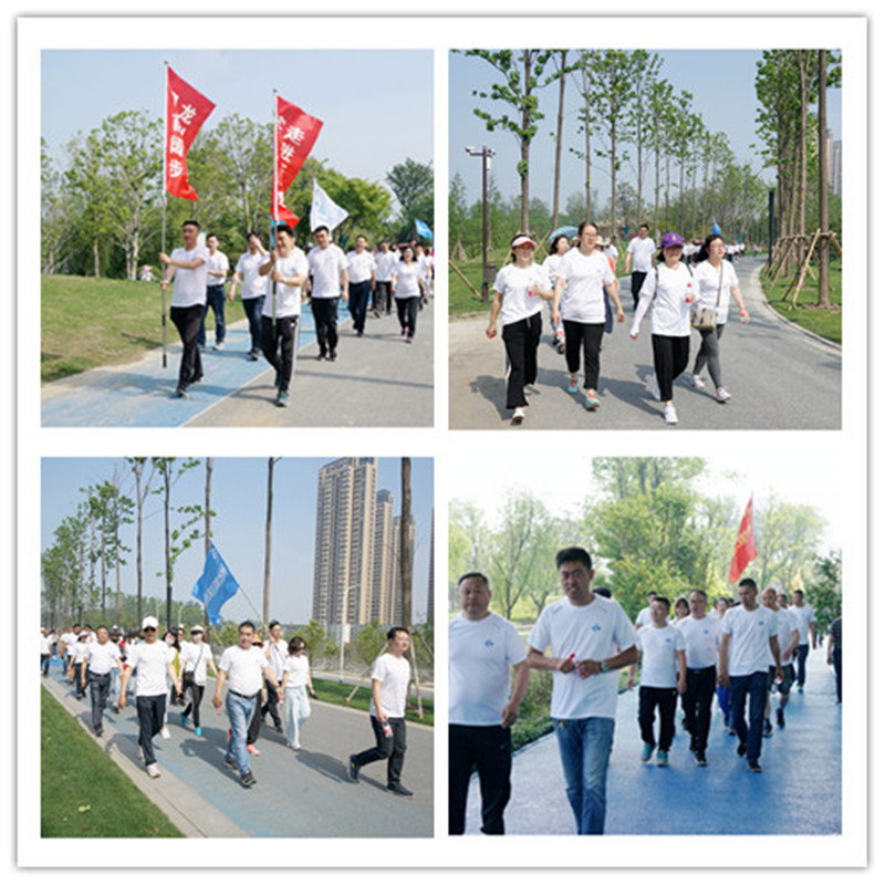 活動開始,首先,總經(jīng)理王智勇代表公司致詞,做了熱情洋溢的動員,接著,參加活動的各位領導為公司本部及四個子公司共五支代表隊進行了集中授旗,最后,隨著公司執(zhí)行董事張勇的隆重宣布和發(fā)令槍聲的響起,健步走活動正式開始。大家從風景如畫的三河六岸公園音樂噴泉廣場出發(fā),沿著步道,一直走到今年新建成的南水北調源頭公園氣膜館。大家一個個精神飽滿,熱情高漲,意氣風發(fā),邊走邊交流,細數(shù)著公司過去及現(xiàn)在發(fā)展歷程中的點點滴滴,同時,欣賞著公園美景,感受著健步走帶來的歡樂,大家一路走,一路笑,各種喜悅寫滿了笑臉。