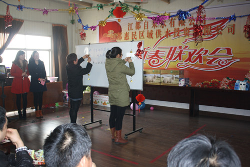 為慶祝蛇年新春,豐富職工文化生活,2月27日,公司舉辦了2013年新春聯(lián)歡會(huì)。聯(lián)歡會(huì)設(shè)置了文娛表演、游藝活動(dòng)、現(xiàn)場(chǎng)抽獎(jiǎng)等環(huán)節(jié),活動(dòng)現(xiàn)場(chǎng)歡歌笑語(yǔ),130余名干部職工齊聚一堂,歡慶新春。
