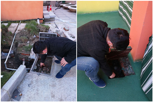 圖為供水工作人員對城區某校園內的相關供水設施進行清洗維護檢查等
