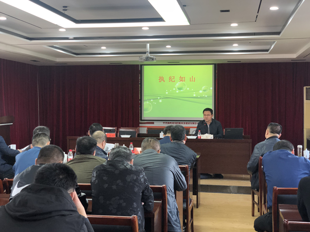 圖為公司領導主持本次廉政教育專題宣講報告會的現場