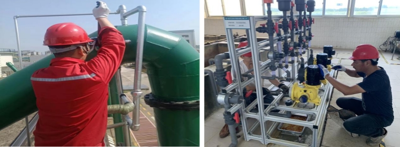 設施維護方面,第二、三水廠制水運行人員增加供水設施的巡查頻次,細致察看設備的運行狀況。機電維修人員每天按計劃對供水設施進行定期保養,做好三級維修保養記錄,保障生產的穩定。