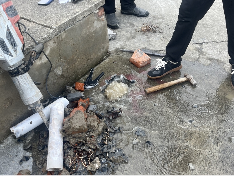 11月27日上午八點(diǎn),安裝維修工郭亮師傅在南片區(qū)宜陵鎮(zhèn)大陳村維修水管。郭亮師傅先用風(fēng)鎬破碎水泥路面,路面破開后發(fā)現(xiàn)漏水嚴(yán)重,由于大陳村所屬區(qū)域沒有控制小范圍的閥門,為了不造成大面積停水,不影響周邊居民的正常用水,在寒冷的冬季,郭亮師傅選擇涉水維修作業(yè),經(jīng)過兩個(gè)多小時(shí)的搶修,將該處漏點(diǎn)止住。