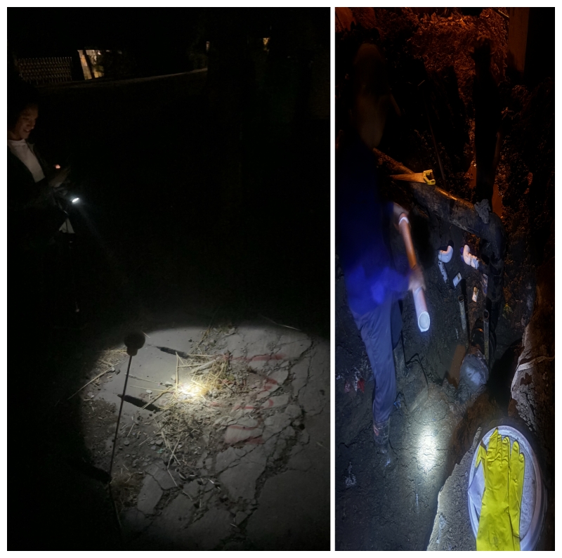 6月天氣開始炎熱起來,在丁伙大街上總能看到三五個(gè)人頂著炎炎烈日,在路邊好像尋找著什么,他們是惠民公司南片區(qū)維修所的員工。前一天,剛做完夜間閉閥試驗(yàn),隨即就分析出了丁伙鎮(zhèn)區(qū)高漏區(qū)域。第二天依舊頂著太陽,沿著路邊一邊和居民了解用水情況,一邊挨個(gè)掀開井蓋進(jìn)行排查,并統(tǒng)計(jì)用戶數(shù)。經(jīng)過一天的走訪摸排,終于在原老丁伙水廠鋪設(shè)的一處DN50PVC管道上發(fā)現(xiàn)了問題,考慮到此處位于主干道路邊,存在著一定的安全隱患問題,經(jīng)過研究討論,決定將此處管道進(jìn)行調(diào)整,以滿足用水需求。
