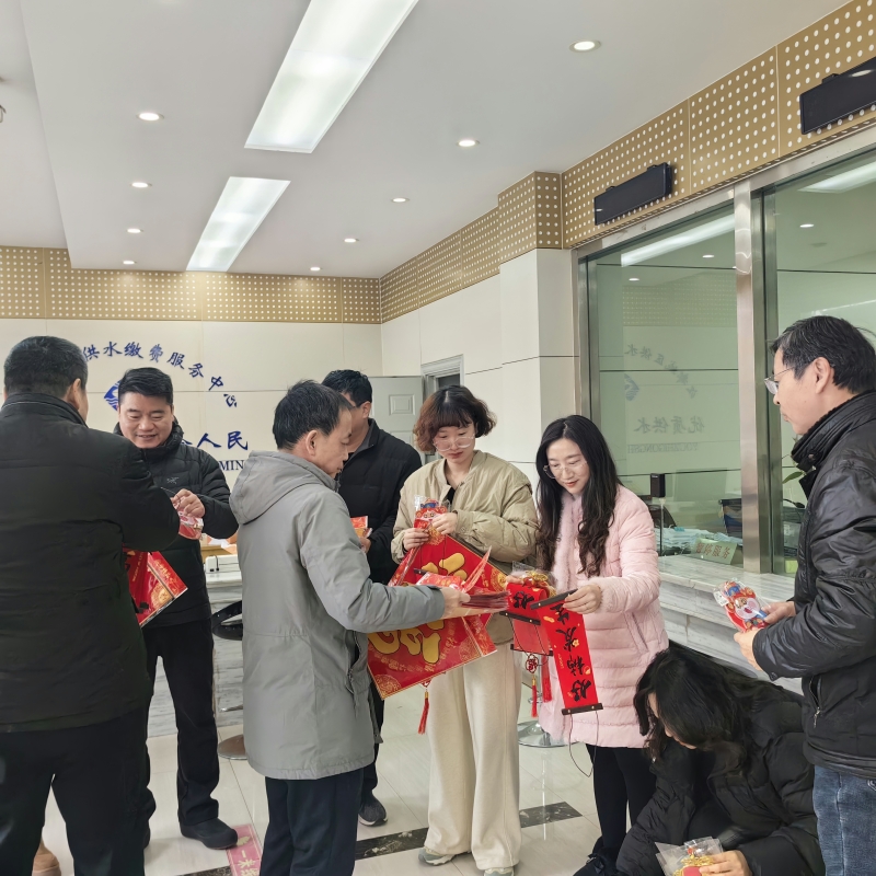 活動(dòng)現(xiàn)場(chǎng),由龍川水務(wù)公司總經(jīng)理李忠國親自帶隊(duì),公司工會(huì)主席石元忠、副主席孫劍及黨群部工作人員共同組成新春走基層特別慰問小組陪同,他們帶著精心挑選的一系列洋溢著喜慶氛圍的“福”字,以及富有蛇年特色的掛件禮物,深入各部門與子公司的集中辦公點(diǎn),每到一處,都受到了職工們的熱烈歡迎。一張張?jiān)⒁庀槿鸬?ldquo;福”字,一件件憨態(tài)可掬的蛇年掛件,一句句飽含深情的真切問候,如冬日暖陽,將濃濃的年味兒與新春的祝福,精準(zhǔn)地傳遞到每一位職工的心坎上,讓整個(gè)公司沉浸在歡樂祥和的春節(jié)氛圍之中。