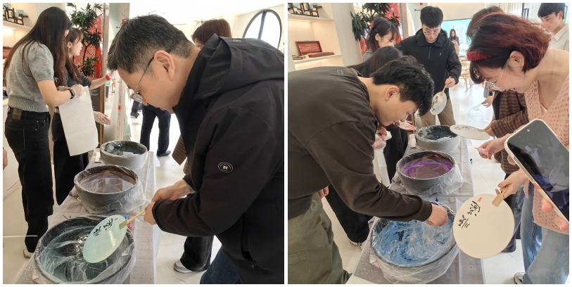 在思想的遠(yuǎn)航之后,活動(dòng)轉(zhuǎn)入非遺文化體驗(yàn)環(huán)節(jié)。青年員工們共同感受流淌在指尖的千年文脈,在專業(yè)老師的指導(dǎo)下體驗(yàn)漆扇制作技藝。在準(zhǔn)備扇面、滴入漆料等一道道工序中,大家不僅領(lǐng)略了傳統(tǒng)工藝的精妙絕倫,更深刻體會(huì)到中華優(yōu)秀傳統(tǒng)文化的深厚底蘊(yùn)。活動(dòng)現(xiàn)場(chǎng)歡聲笑語(yǔ)不斷,一件件獨(dú)具匠心的漆扇作品在巧手中誕生,展現(xiàn)出青年一代對(duì)傳統(tǒng)文化的創(chuàng)新理解。